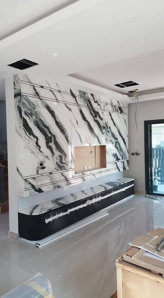 - งานหินอ่อนหรือหินแกรนิตในห้องรับแขก